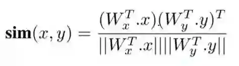 x和y分别是指文本和视觉数据的点。为了比较x和y,我们可以使用余弦相似度:
