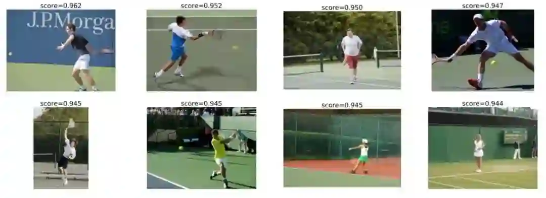 Query 1: “A man playing tennis”.