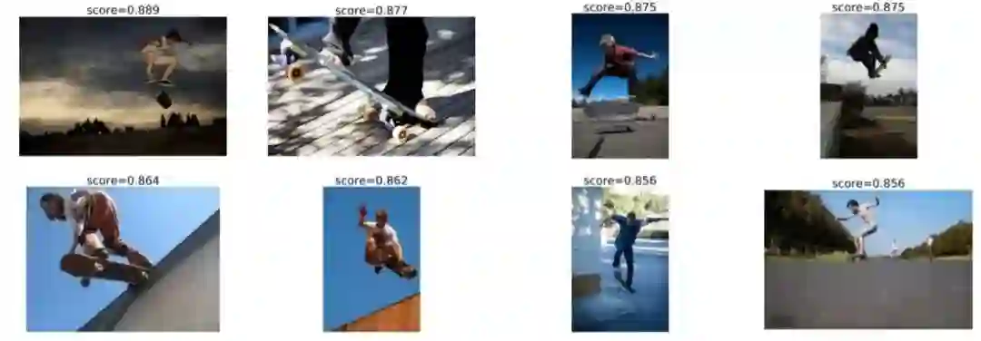 一般而言,检索到的关键词很好地描述了查询图像。但是,我们可以识别一些错误(红色)。例如,在最后一个例子中,“walking”一词被错误地检索出来。我们认为这可能是由于训练集中有很多图像同时包含“people”和“walking”。