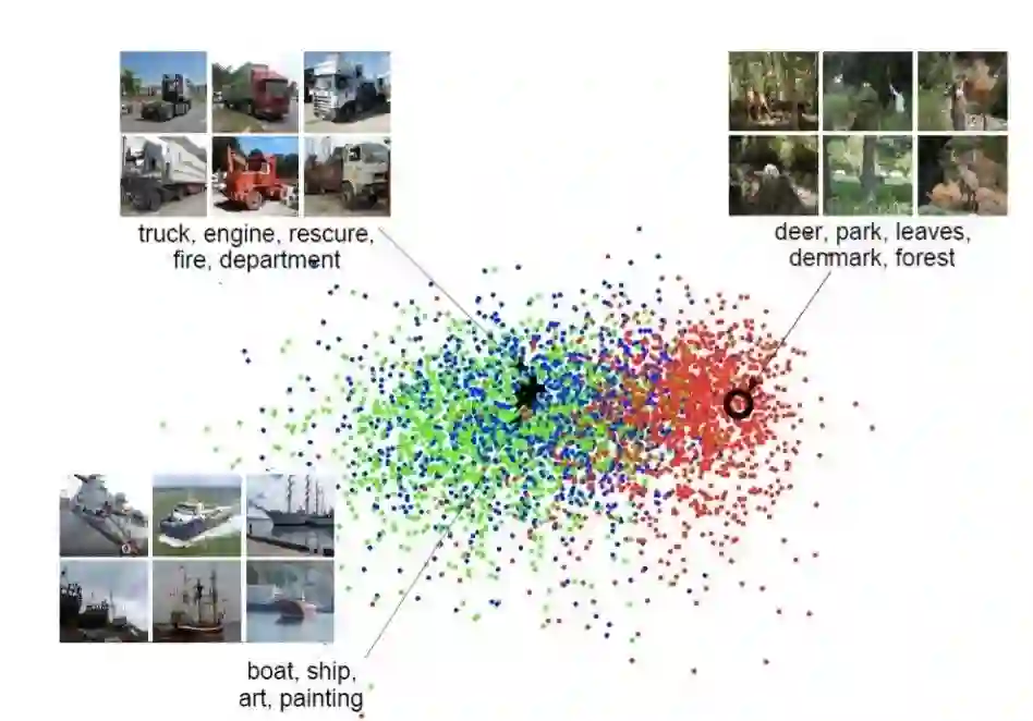 典型相关分析可用于构建多模态检索。给出一组图像及其标签的数据集,CCA将其对应的特征向量映射到相同的空间,其中可以使用相似性度量(similarity measure)来执行Image2Tag和Tag2Image搜索任务。
