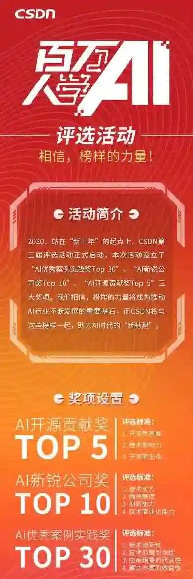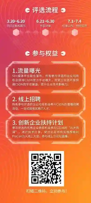 我们相信,榜样的力量将成为促进AI行业不断发展的重要基石,而CSDN将与这些榜样一起,助力AI时代的「新基建」。欢迎感兴趣的企业扫描下方的