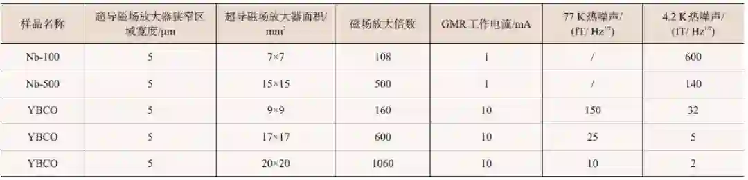 表1 不同规格GMR/超导复合式传感器及其性能[16,23]