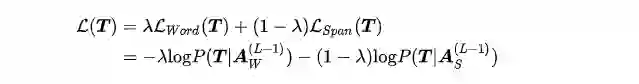 其中 表示 l-th层,符号序列 的 第 个隐层向量,也即第 个span的第 个隐层向量, 。片段 是在给定上文时,同时预测的。