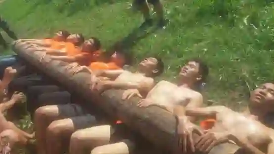 在整个培训过程中,要求大家严格遵守纪律,手机上交,迟到和睡觉的直接遣送回家,自买车票。另外,犯错误就惩罚他的老大,例如100个俯卧撑。