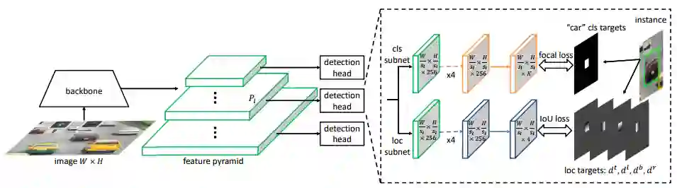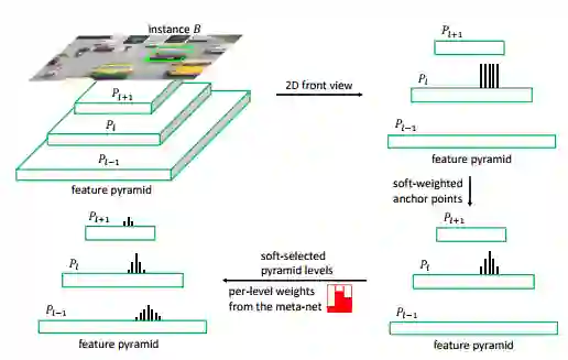 概述我们的训练策略与h soft-weighted anchorpoints和soft-selected pyramid levels。黑条表示正锚定点对网络损耗贡献的指定权重。