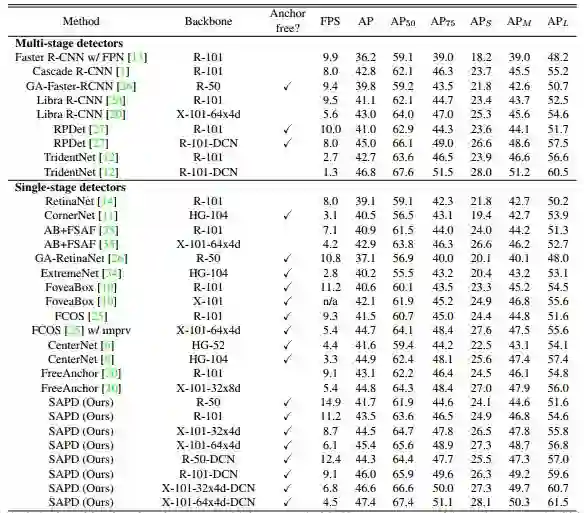 Anchor free是目标检测领域的一个研究热点,其主要可以分为anchor-point和keypoint两类。后者在往往在一个高分辨率的特征图上进行检测,其优点是准确率高,但是计算量大。而anchor-point的方法往往在多个分辨率上进行检测,结构简单,速度更快。作者认为anchor-point的方法性能不高主要还是在于训练的不充分,主要是注意力偏差(attention bias)和特征选择(feature selection)。因而作者提出了两种策略:1)soft-weighted anchor points对不同位置的样本进行权重分配,2)soft-selected pyramid levels,将样本分配到多个分辨率,并进行权重加权。
