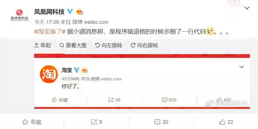 此外,凤凰网科技还发微博表示有小道消息称:是程序猿退格的时候多删了一行代码。。。