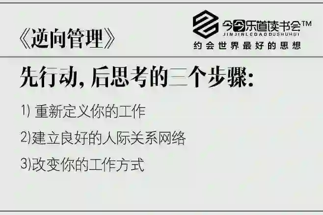 要想成为一个优秀的领导者,必须学会“逆向管理”,要先行动,后思考,还要学会“定,重新定义工作;建,扩建人际关系网络;改,改变做事方法”。
