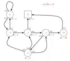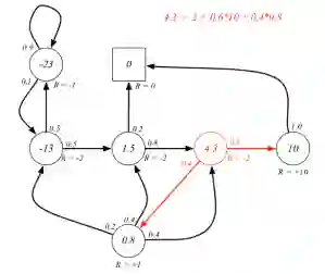 各状态圈内的数字表示该状态的价值,圈外的R=-2等表示的是该状态的即时奖励。