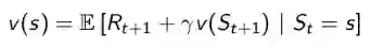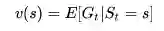定义是在MDP下的基于策略π的状态价值函数,表示从状态s开始,遵循当前策略时所获得的收获的期望;或者说在执行当前策略π时,衡量个体处在状态s时的价值大小。数学表示如下: