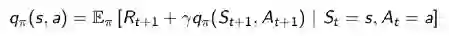 定义为行为价值函数,表示在执行策略π时,对当前状态s执行某一具体行为a所能的到的收获的期望;或者说在遵循当前策略π时,衡量对当前状态执行行为a的价值大小。行为价值函数一般都是与某一特定的状态相对应的,更精细的描述是状态行为对价值函数。行为价值函数的公式描述如下: