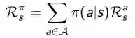用文字表述是这样的:当前状态s下执行某一指定策略得到的即时奖励是该策略下所有可能行为得到的奖励与该行为发生的概率的乘积的和。