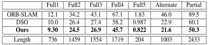 表5: 轨迹的RMSE绝对值,单位为米
