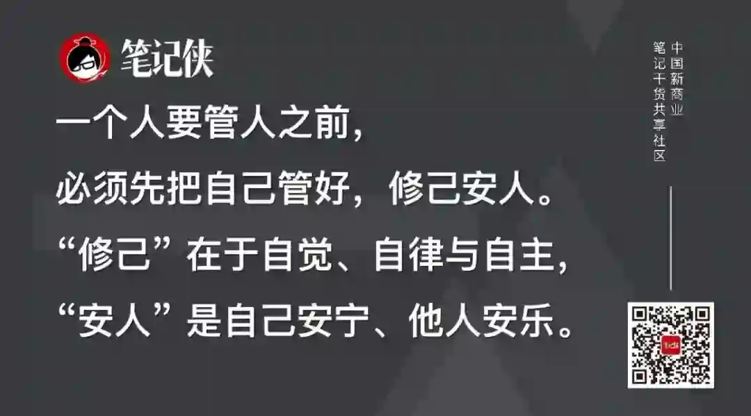 修己的意思,是修造自己,而不是改变他人。很多人都花费时间、精力,去改变他人,结果却往往适得其反,人难安,己也难安。这种方向上的错误,非常浪费管理成本。