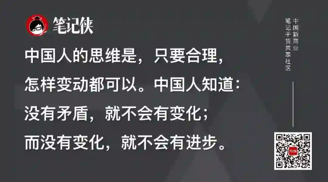要随着变化而变动,中国人的思维是:只要合理,怎样变动都可以。中国人知道,没有矛盾,就不会有变化;而没有变化,就不会有进步。