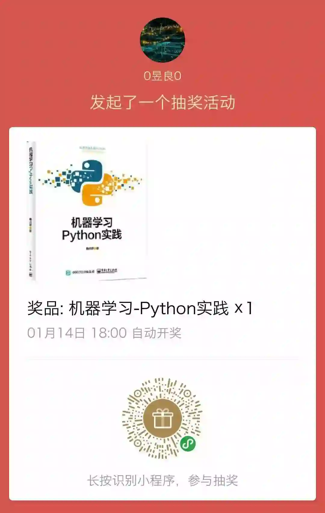 抽奖送《机器学习--python实践》一本