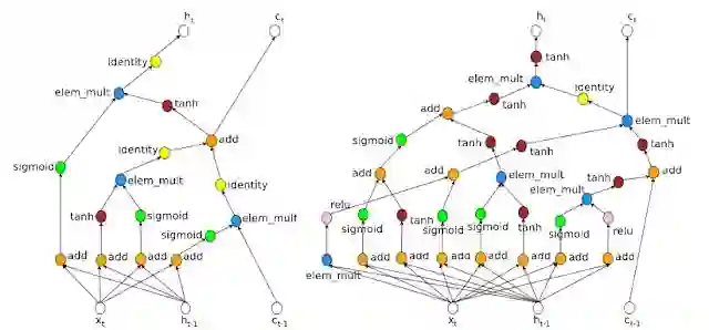 上图取自 Le 和 Zoph 的博客:左边更简单的架构是由人设计的,右边更复杂的架构是由神经网络设计的。