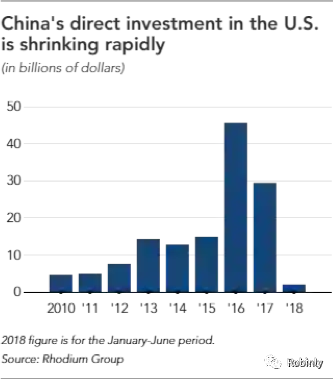 2010-2018 中国投资美国的规模变化