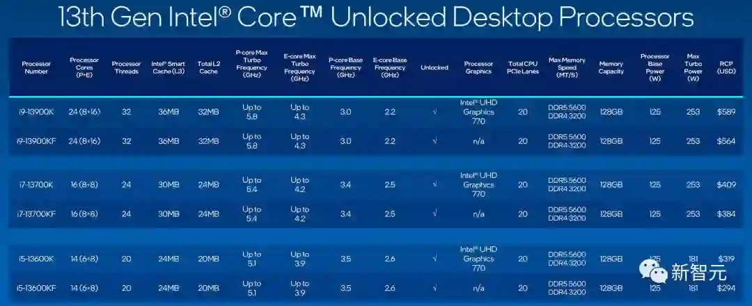 i7-13700K,16核心24线程,最高睿频5.4GHz,预售价3499元