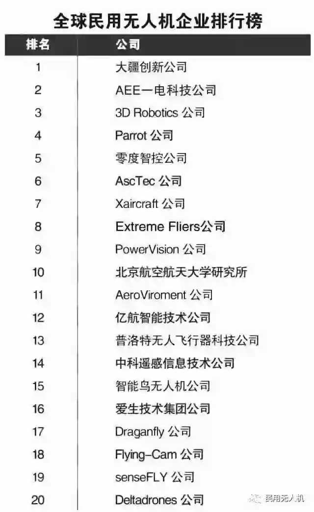 在民用无人机领域,几乎被中国企业屠榜。大疆以绝对的优势位列榜首,而一电科技、零度智控、亿航等也稳居世界前列。而在军用无人机领域,则主要以欧美厂商为主。