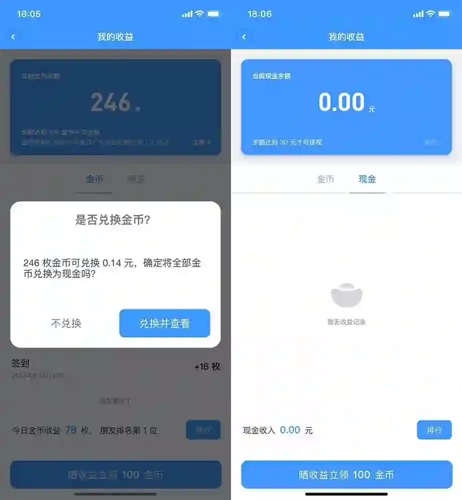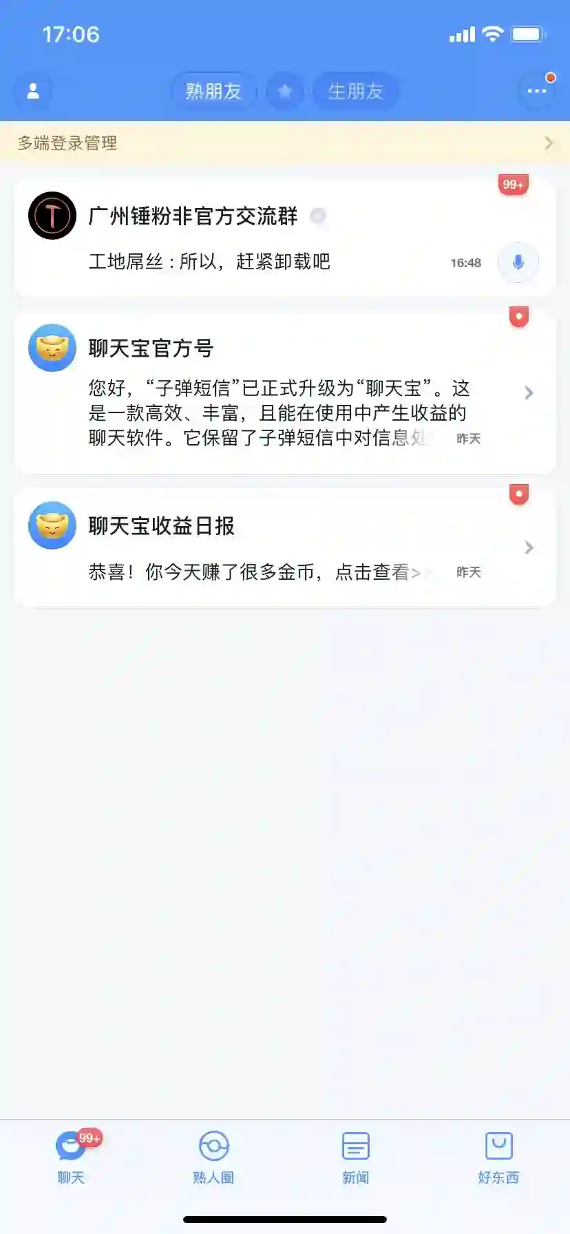 邀请朋友能赚钱,聊天能赚钱,看新闻能赚钱,玩 H5 游戏能赚钱,发“熟人圈”内容能赚钱,甚至改名换头像,都指向了“能赚钱”这一暗示。不过聊天宝并不是直接给你发现金,而是通过完成各种“任务”获得金币,然后将一定金币可以兑换成人民币这样子。