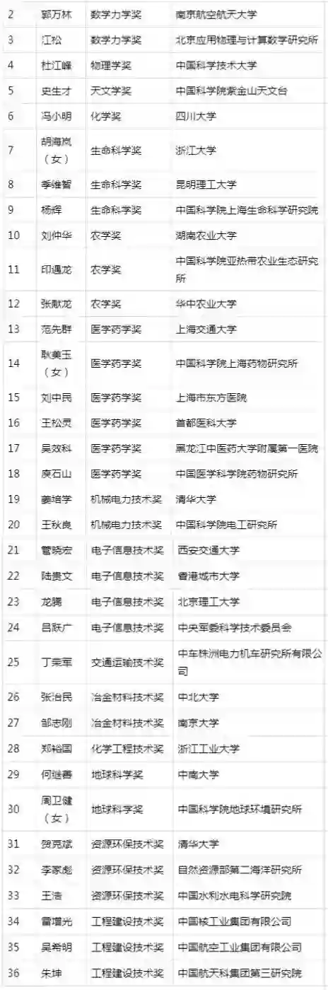 科学与技术进步奖(35名)