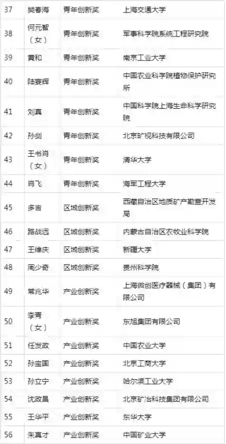 从获奖名单来看,中国科学院共有7位学者获奖,清华大学有3位学者获奖,上海交通大学2位学者获奖。此外,在全国56位获奖人中,仅有2位为35岁以下,均来自上海。他们是中科院神经研究所的两位青年科学家,31岁的刘真研究员和34岁的杨辉研究员。