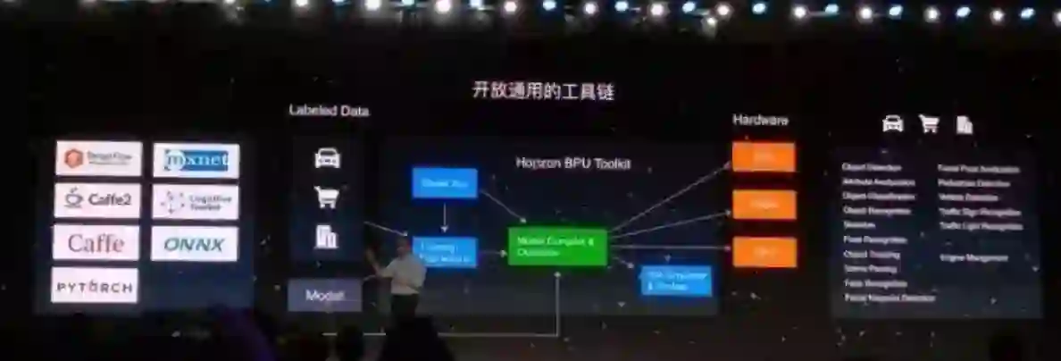 BPU架构是地平线为配合两款处理器推出的开放通用工具。它能够支持 TensorFlow、Caffe2、MXnet 等框架,提供从数据、模型部署到应用落地的开发环境与软硬件深度结合的系统。
