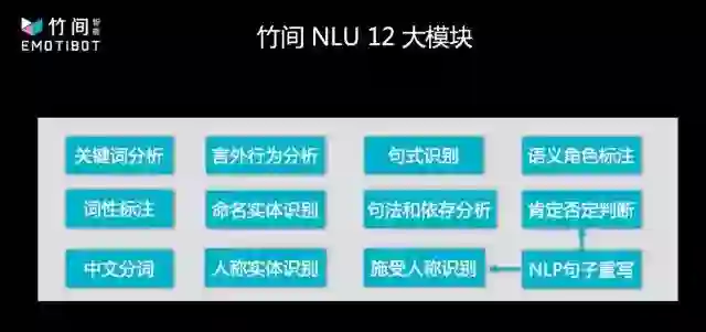 简仁贤介绍,他们从做情感情绪入手,深入到意图理解,再将意图与情绪情感应用到语义上面。语义的理解课题,就像情绪情感课题一样,纯粹的传统的 NLP 方法,或者纯新式的现代深度学习,都无法解决数十年中解决不了的问题。因此,竹间智能把做情绪同样的方式应用到语义理解中,以传统的 NLP 技术打底,加上语言学结构,再加上新的机器学习、深度学习的方法,融合地去把整个语义理解抽象化然后做降维,对于语义理解,真正做到语义层面的抽象和理解,而不是字词层面的分析。据介绍,竹间智能的语义理解算法包含四十余个模块,已经迭代到了第四代,尝试了对抗生成网络等众多新方法。