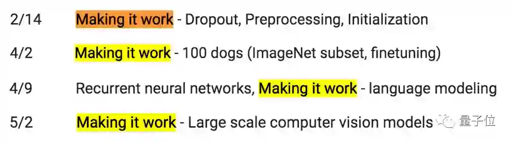 作为一门注重实践的课程,课程表里有四节课标注了Making it Work,那便是老师向同学们传授实现大法的时候。