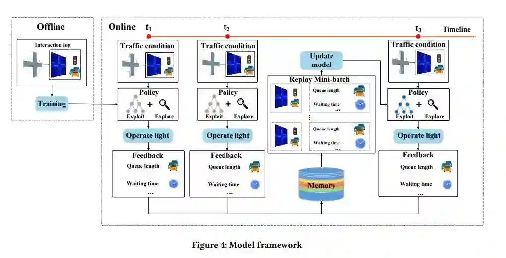 智能交通信号灯控制对于高效的交通系统至关重要。现有的交通信号灯主要由手工制定的规则操作,而智能交通信号灯控制系统应动态调整为实时交通。使用深度强化学习技术进行交通信号灯控制的新兴趋势,最近的研究显示出令人鼓舞的结果。但是,现有研究尚未在现实世界的交通数据上测试这些方法,它们仅专注于研究奖励而不解释策略。而作者提出了一种用于交通信号灯控制的更有效的深度强化学习模型。并在从监控摄像头获得的大规模真实交通数据集上测试了方法。