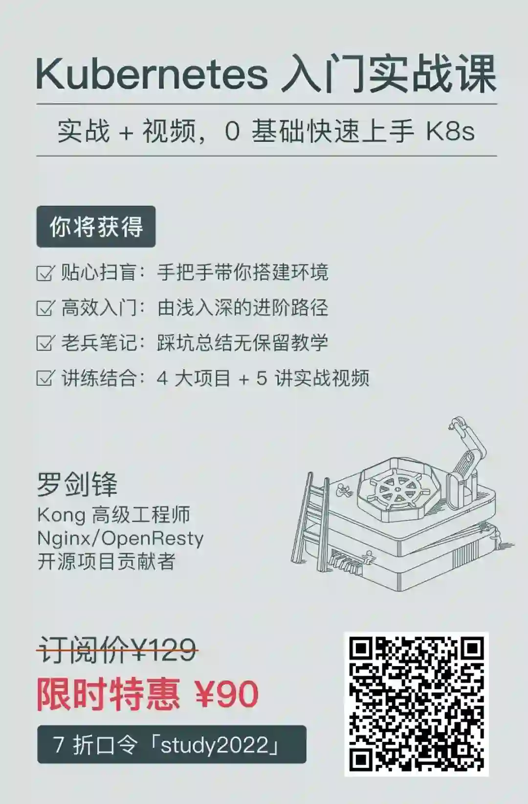 可贵的是,老罗选择了 2022 年初发布的最新 Kubernetes 1.23.3 版本,讲解概念的同时,还会给出大量的 docker、kubectl 操作命令,看完课程后立即上手演练,用实际操作来强化学习效果。