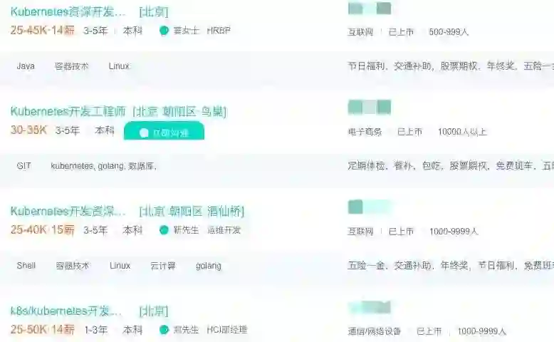 最近受疫情影响,虽然大环境不是很乐观,但我发现阿里、头条等这些互联网大厂,都在大量招聘 Kubernetes 相关人才,普遍给到 30K/ 月以上,中小型公司也以 20K/ 月起步。