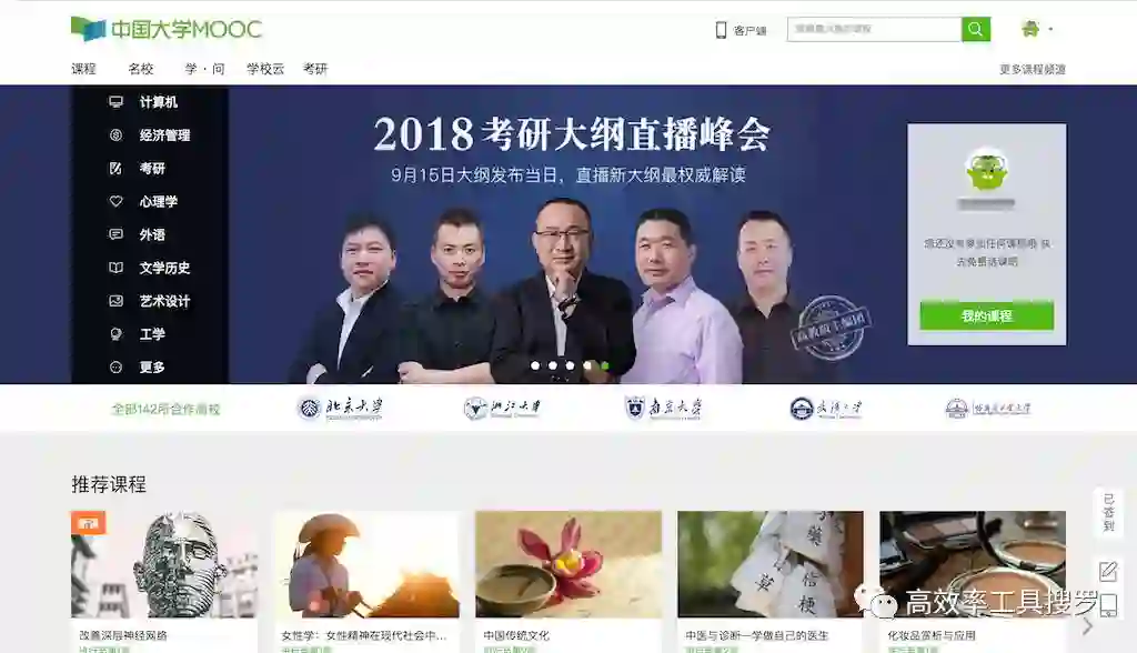 它上面包含了国内很多顶级的课程,也涵盖了大学的大部分专业,而且几乎所有课程都是免费的。