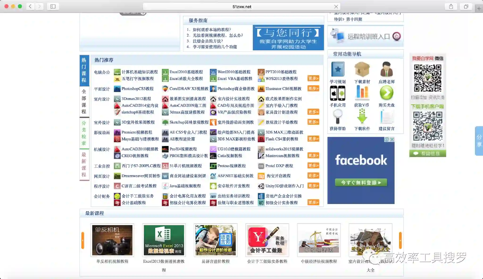 作为一个老牌的自学网站,虽然它的界面现在依然很丑,但是它的课程很全,从最早的办公软件,图像办公软件,到现在覆盖各行各业的自学网站。
