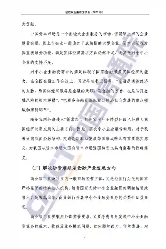 报告深入分析了当前实体经济转型升级面临的银行融资风险较高、企业融资成本较高、产融信息缺乏打通等融资难题,提出了物联网助力金融提升风控能力、拓宽业务范围,实现数据打通、增强分析能力,降低业务成本、提升管理效能,赋能信用体系、促进行业发展的四大新方向。
