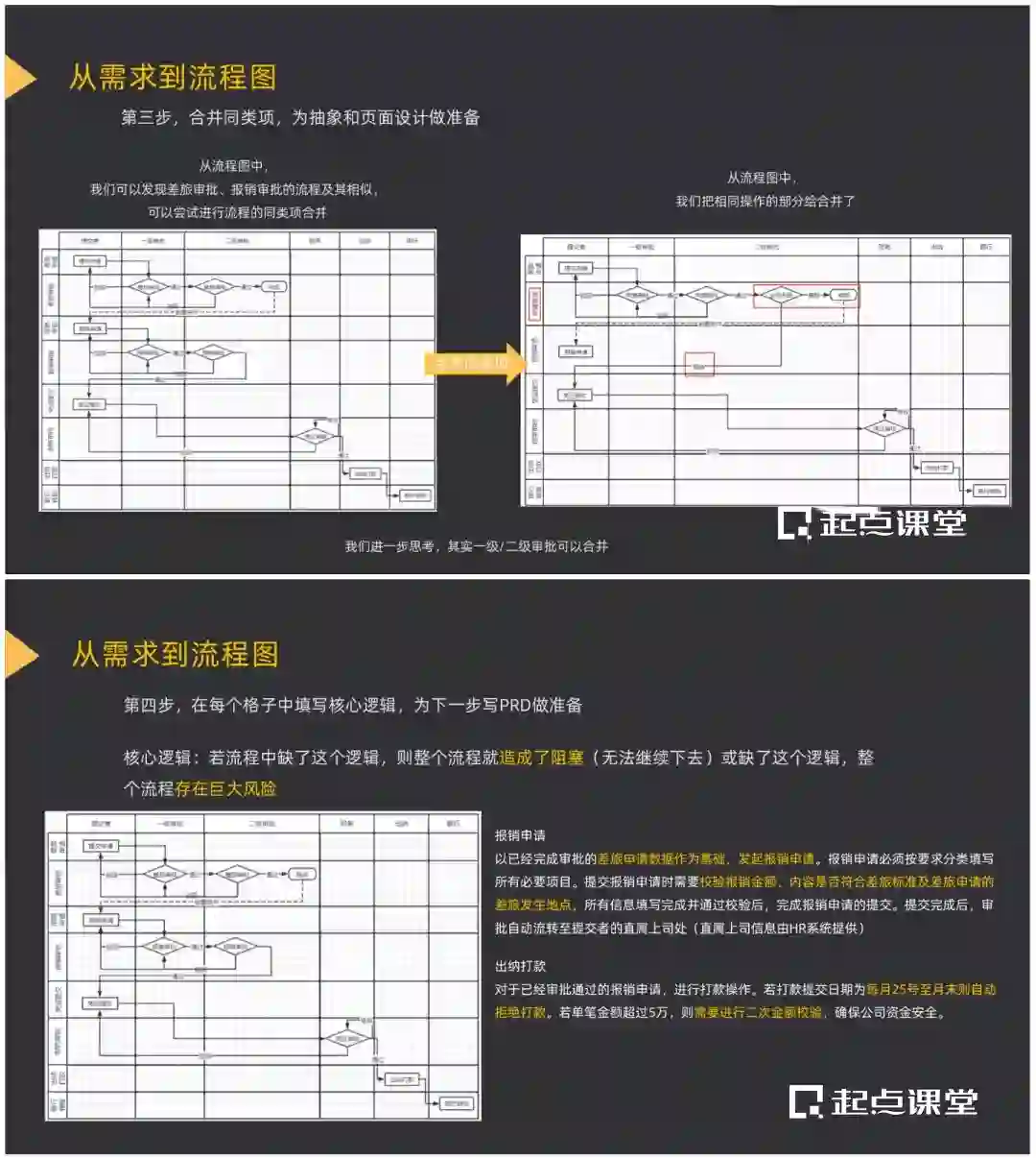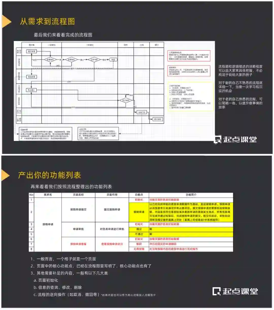 包括如何从需求转换为流程,如何按照流程产出功能列表,以及如何根据功能列表撰写PRD。