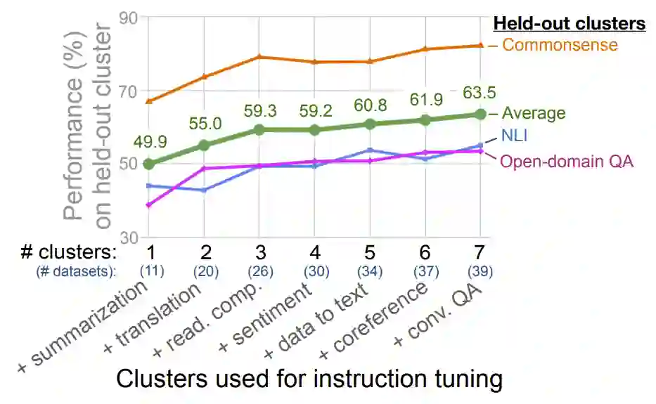 作者们发现,FLAN这一方法在与指令更相关的任务上表现更好(例如自然语言推断,问答), 而在与常识更相关的任务上表现较为普通。