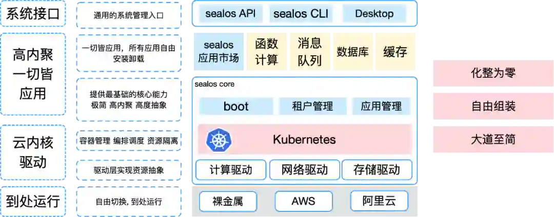 实现层面,core 是非常内聚的,意味它向下仅提供云内核生命周期管理,如安装 / 伸缩 / 升级 / 清理,向上做好应用的打包与管理即可。