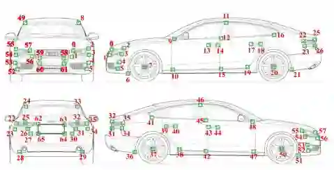 图2 定义汽车模型的3D关键点,每个模型都由66个关键点构成。
