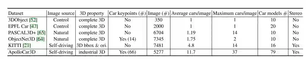 建立用于自动驾驶的大规模且不断增长的3D汽车理解数据集,即ApolloCar3D,它补充了现有的开源三维物体数据集。