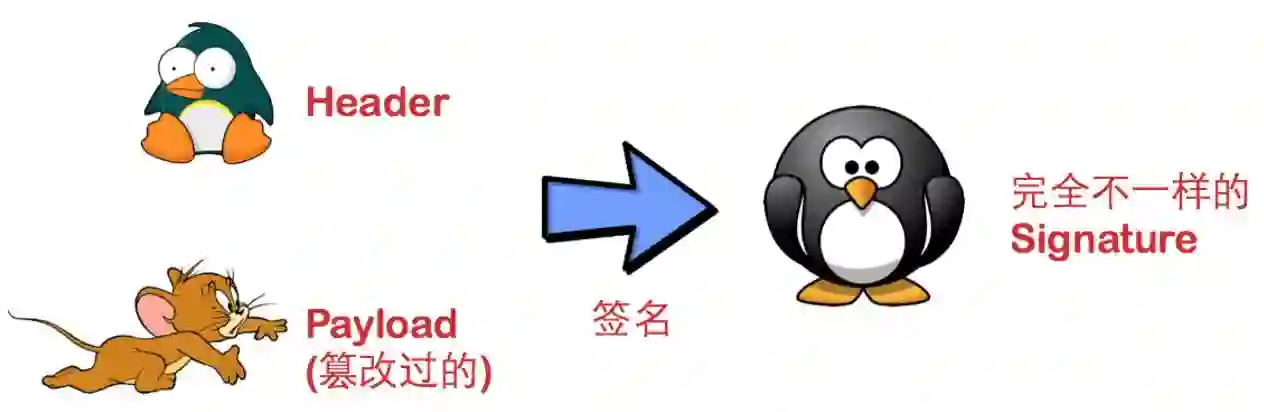 最后一步签名的过程,实际上是对头部以及载荷内容进行签名。一般而言,加密算法对于不同的输入产生的输出总是不一样的。对于两个不同的输入,产生同样的输出的概率极其地小(有可能比我成世界首富的概率还小)。所以,我们就把“不一样的输入产生不一样的输出”当做必然事件来看待吧。
