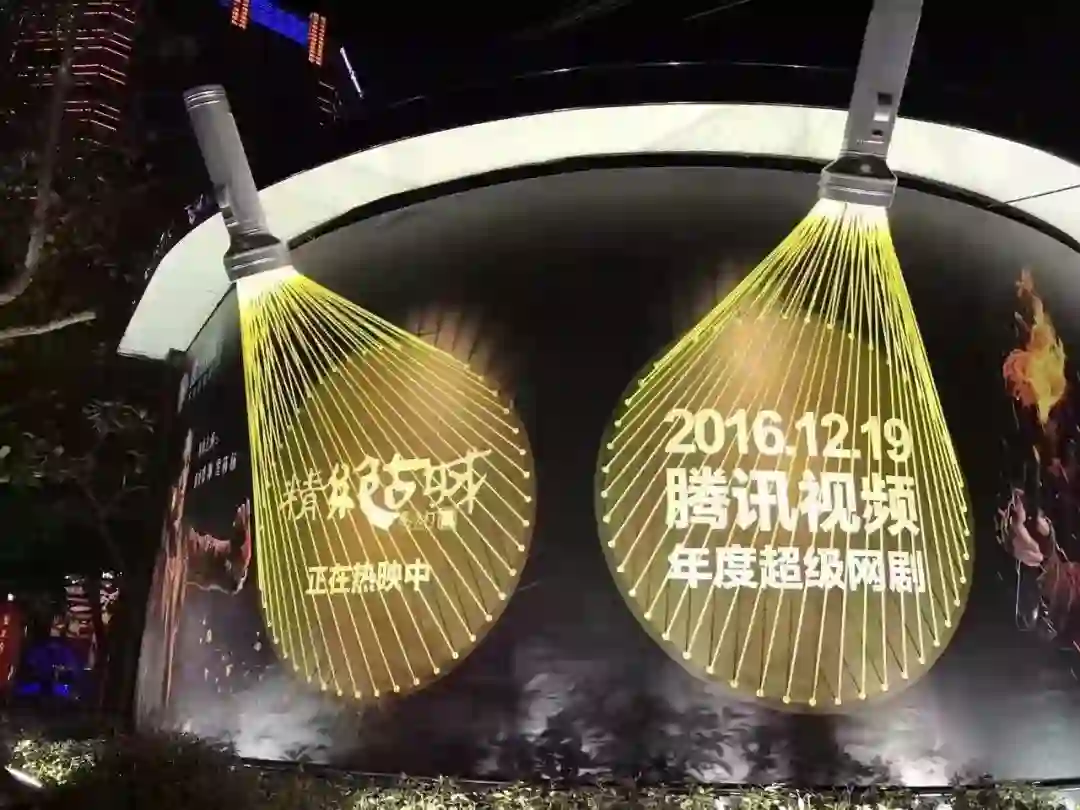 《精绝古城》上映时,腾讯视频曾在上海淮海中路搞了个“不可能的任务”。完全以灯线支撑的两只“悬空手电筒”被看不见的摸金校尉拿在手里,预示着那将是一个多么多么曲折离奇故事。