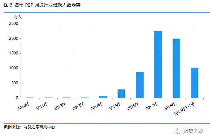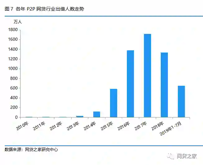 从近年P2P网贷行业借款人数走势来看,与出借人数走势基本一致。