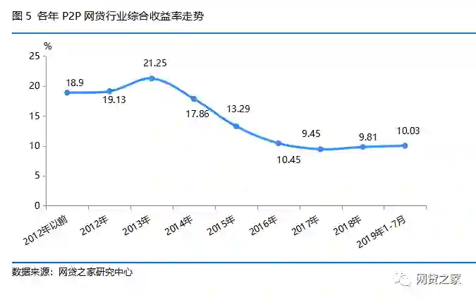 从近年P2P网贷行业综合收益率来看: