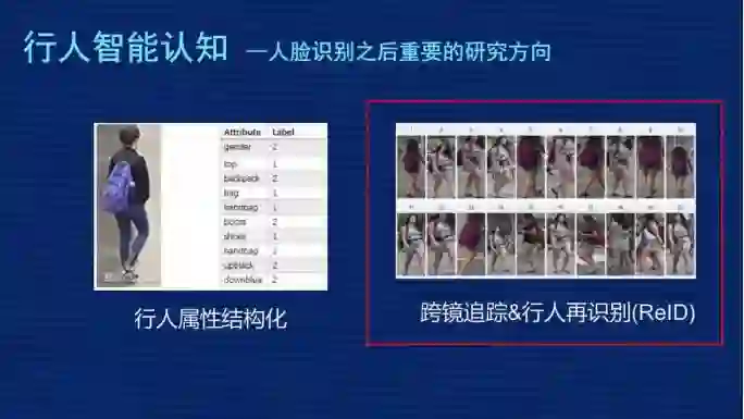 ReID 是行人智能认知的其中一个研究方向,行人智能认知是人脸识别之后比较重要的一个研究方向,特别是计算机视觉行业里面,我们首先简单介绍 ReID 里比较热门的几项内容:
