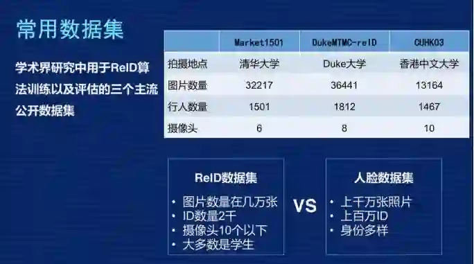 ReID 常用的数据情况如何?右图列举了 ReID 学术界最常用的三个公开数据集: