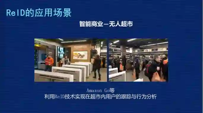 无人超市也有类似的需求,无人超市不只是体验优化,它还要了解用户的购物行为,因为如果只基于人脸来做,很多时候是拍不到客户的正面,ReID 这个技术在无人超市的场景下有非常大的应用帮助。