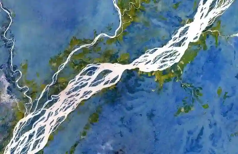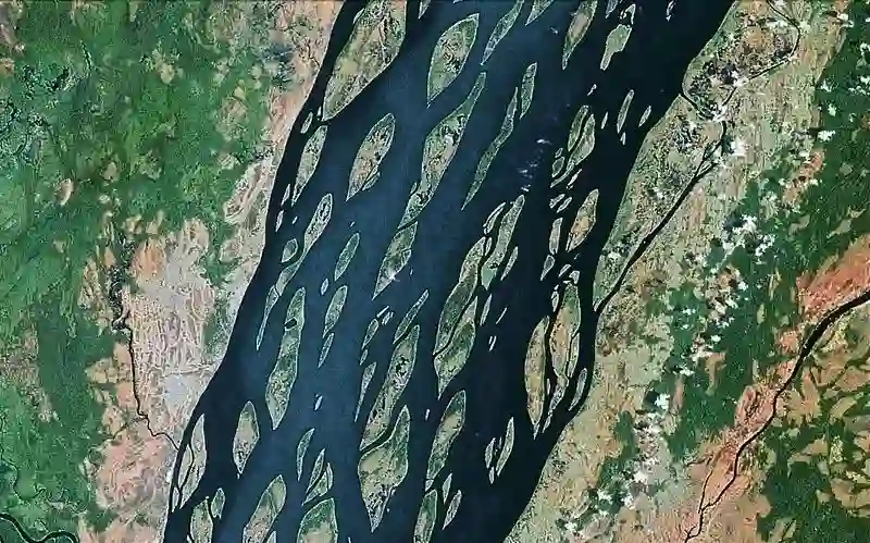 上面3张图片是发源于我国境内,先后流经我国西藏、印度和孟加拉国的雅鲁藏布江(也叫布拉马普特拉河)。雅鲁藏布江在印度阿萨姆邦那一段的辫状河的形态最为曲折繁复。