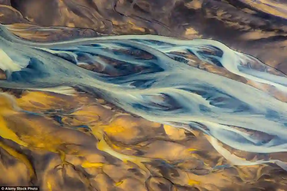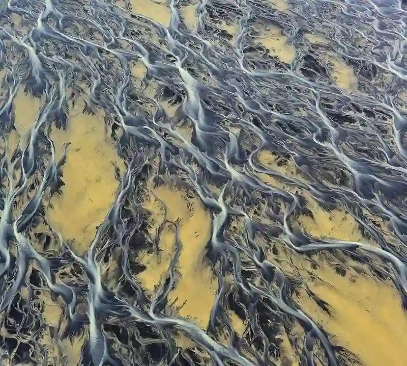 上面的6张图片是位于冰岛的由冰川形成的河流。它们可能是地球上最接近艺术品的辫状河。